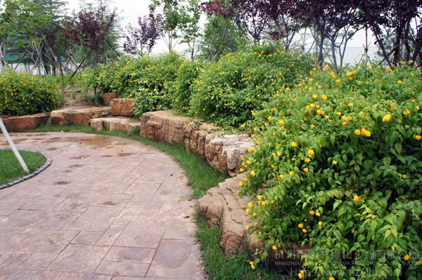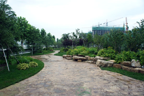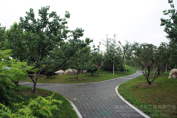 山东寿光市东环路东侧绿化改造工程(圣城街-北环路)面积9万平方米,施工范围为机动车道与非机动车道之间2.5米的隔离绿化带和30多米宽的路侧绿化带,施工内容包括土方地形整理、绿化种植、园路铺装、景石摆放、景观小品营建等。2009年9月开工,2010年7月竣工。经过2年的精心养护,如今,这里树木葱郁,花草繁茂,一路走来,随着多种风格的园路在脚下延伸,风景也在眼前不断变化。