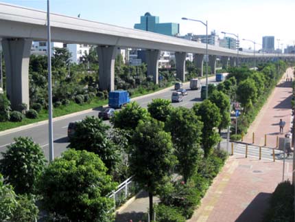 如今,开车行进在这条道路上,干净整洁的路面、开阔通透的视野、清新自然的景观,给人带来闲适、惬意的感觉。“以人为本,尊重自然”的绿化理念,体现在景观中的每个细节;自然环境与城市环境的密切结合,使高架桥的道路通行功能与桥下中央绿化带的生态功能有机融合。整条道路,不仅体显出深圳这个滨海大都市独有的景观特色,更彰显出这个城市的生机活力与热情奔放。