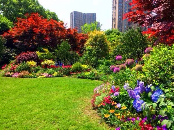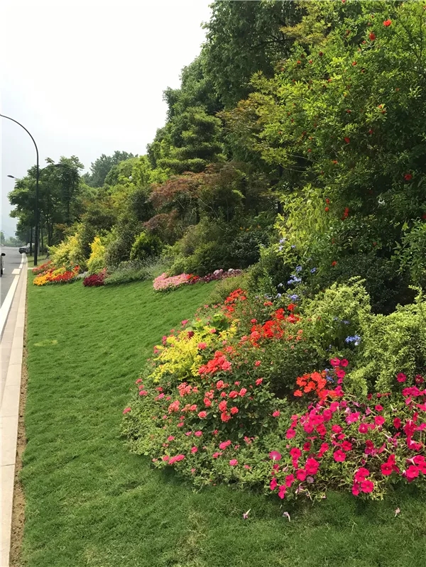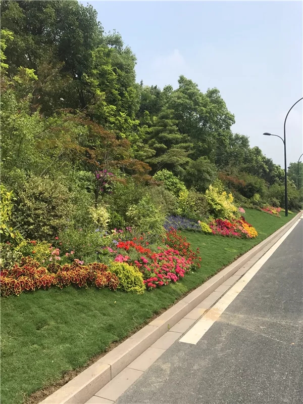 在植物搭配方面,花色搭配既要美观,又要自然,避免使用强烈的对比色,群落配植要遵循疏密有致原则,保证每株植物都能各有所美。