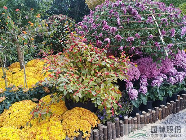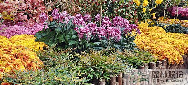 本次花境景观中的主体虽是菊花,如球菊、蟹爪菊、乒乓菊、芙蓉菊等,但点缀其中的植物优良品种,使得整体花境更具独特魅力。
