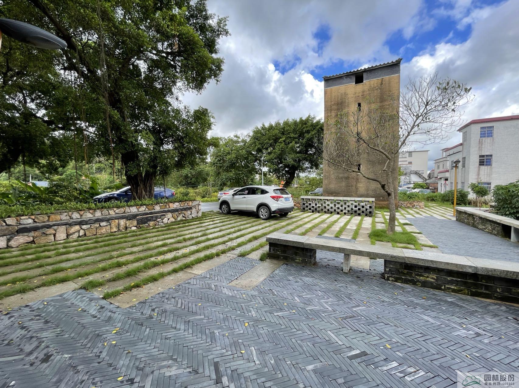 入口进入,是石咀防范匪患而建的黄泥百年碉楼,为凸出碉楼这一特殊的建筑,我们在碉楼设计开阔的,拥有与碉楼相关记忆符号的村口节点小公园。