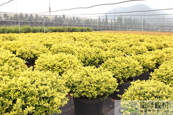 ‘金宝石’钝齿冬青Ilex crenata 'Golden Germ':是一种密集,多枝的常绿灌木,株型紧凑,叶子呈卵形到椭圆形,叶缘具有圆形的锯齿,表面光滑,无刺。新梢和新叶金黄色,老叶黄绿色,四季不变色,自然成型,是优良的金黄色系列花灌木。可以用于片植、列植、丛植等多种种植方式,还可以用于色块、基础种植、混合花境等场合。此外,它也可以被用于制作球形盆景。需要注意的是,‘金宝石’钝齿冬青是雄性品种,因此它不会结果。然而,在晚春的茎上,你可以在叶腋处看到绿白色的小花,这也是一种美丽的景象。