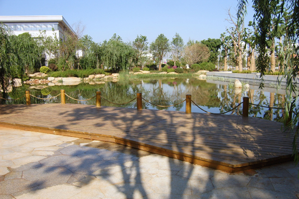 昆明市市级党政机关办公用房搬迁建设项目区内景观绿化工程(第三标段),地处昆明市呈贡县吴家营乡小尖山西北附近,总面积101800㎡,工程包括硬质景观、绿化种植和水电工程,为大型综合性园林景观工程。绿轴D组团内的人工湖的施工,清香木、黄连木和山楂等特型树的应用,自然石汀步、老石板园路等生态型游步道的铺装,成为工程中最大的特色和亮点。漫步在林荫小道上,呼吸着清新的空气,聆听着涓涓的流水声,一幅绿意盎然、闲适惬意的生动画卷带给人们更多关于自然的完美体验!